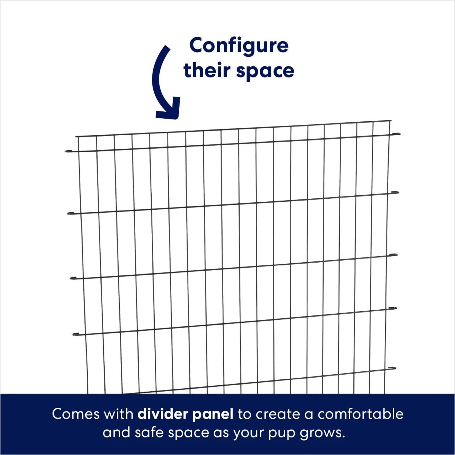 - Removable divider panel allows you to create a smaller space, so the crate’s size can be adjusted to accommodate your puppy as they grow, making it an essential accessory they’ll use throughout their life.
