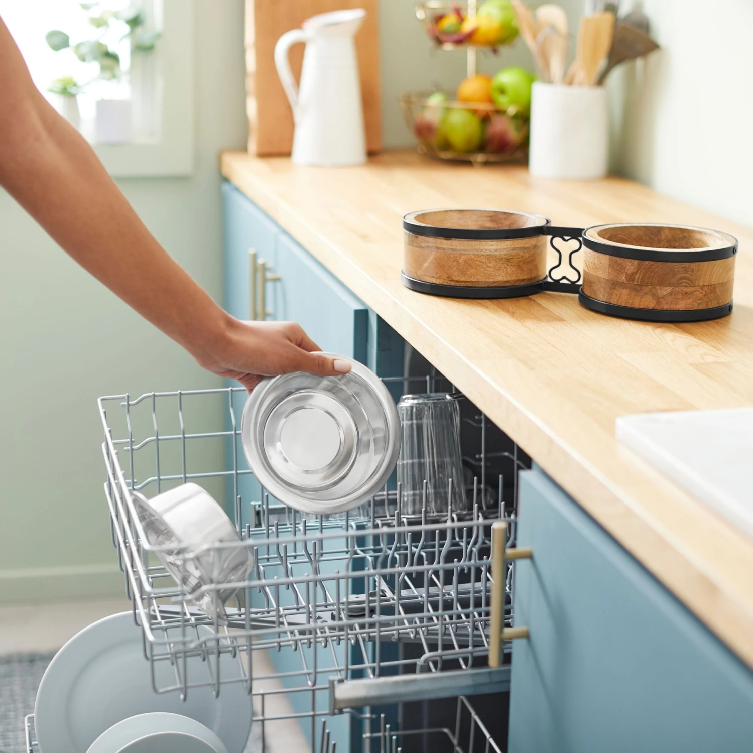 - Removeable stainless-steel bowls are dishwasher safe, making cleanup even easier.